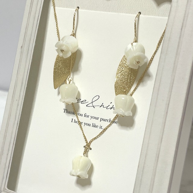 【14kgf/14金ゴールドフィルド】すずらんのピアスとネックスセット♡