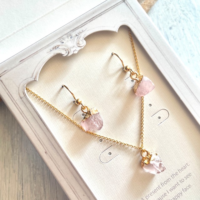 14kgf ローズクォーツ ピアス&ネックレスセット