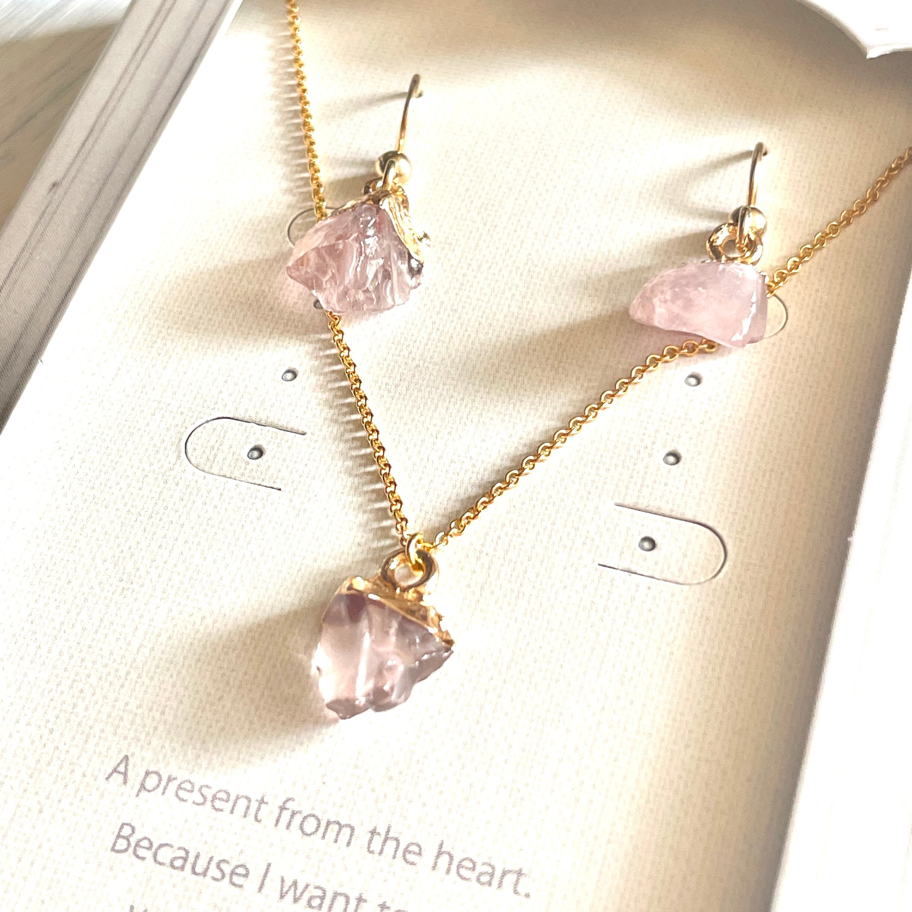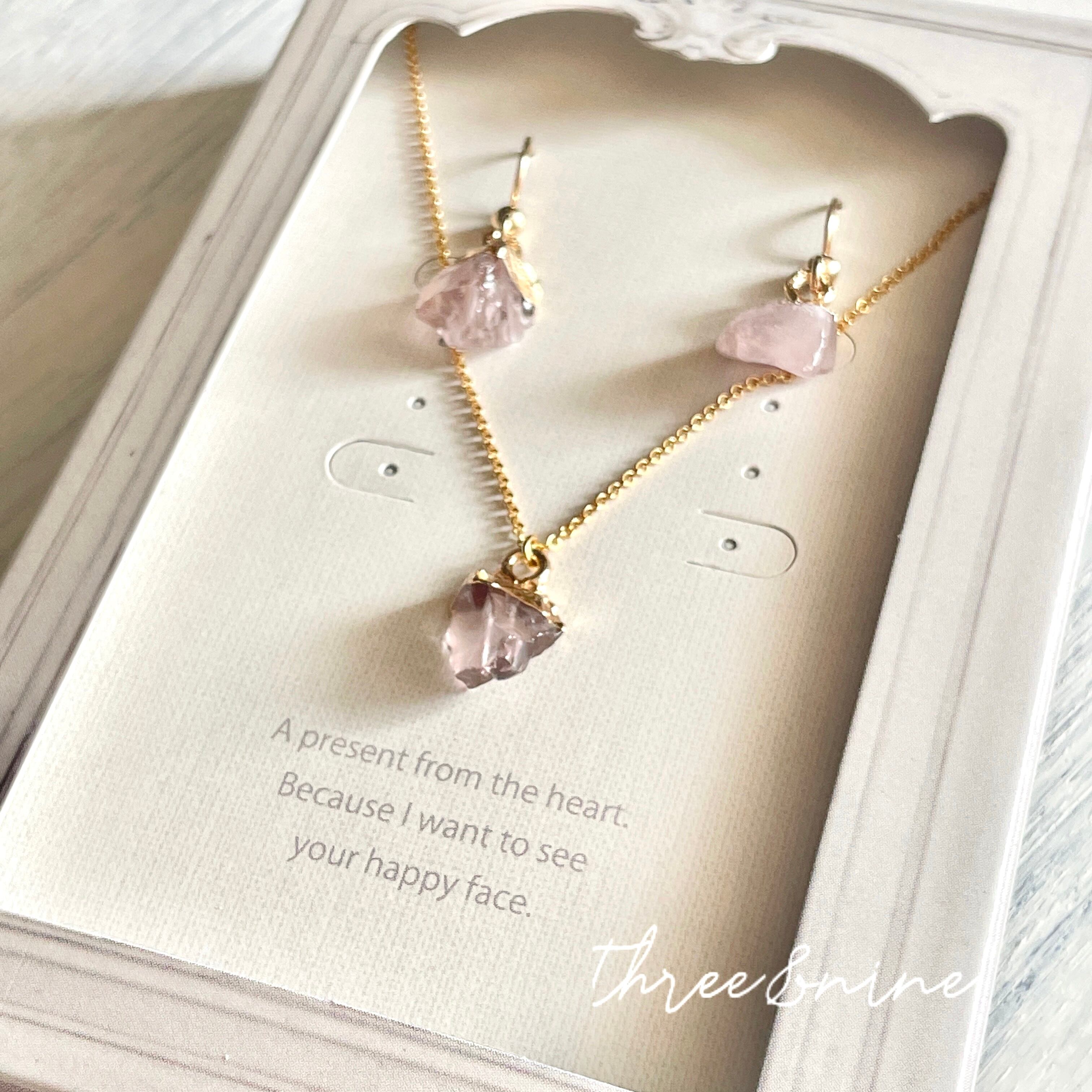 14kgf ローズクォーツ ピアス&ネックレスセット