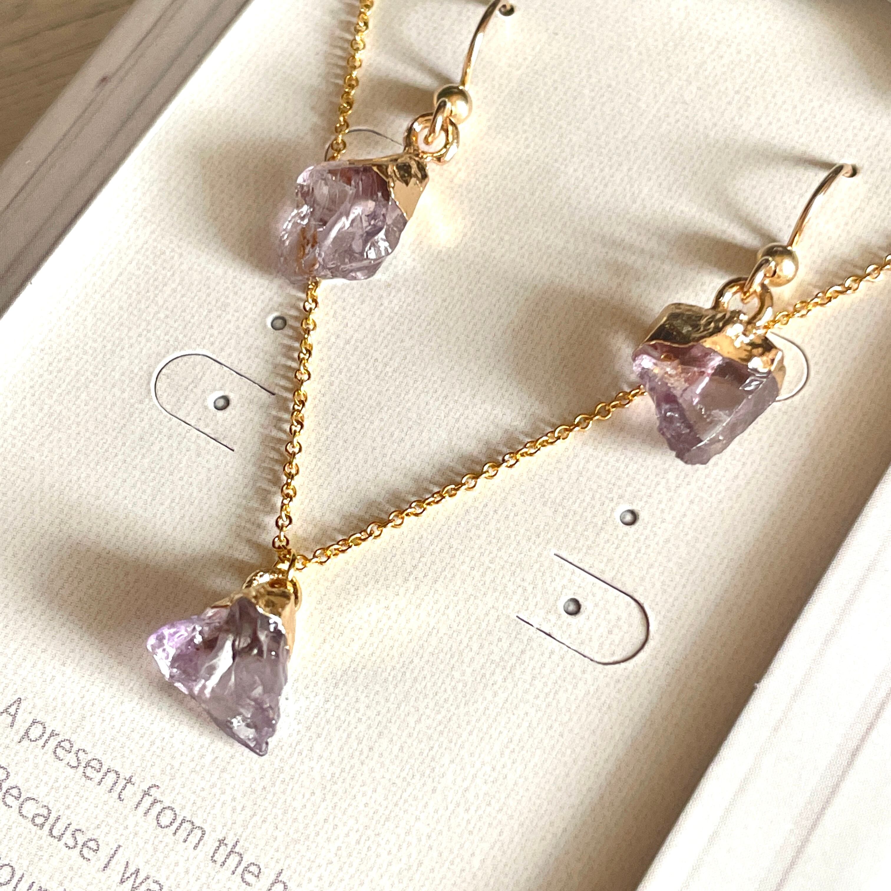 アメジスト と14kgf(14金ゴールドフィルド)を使用した大人可愛いピアスとネックレスセット♡